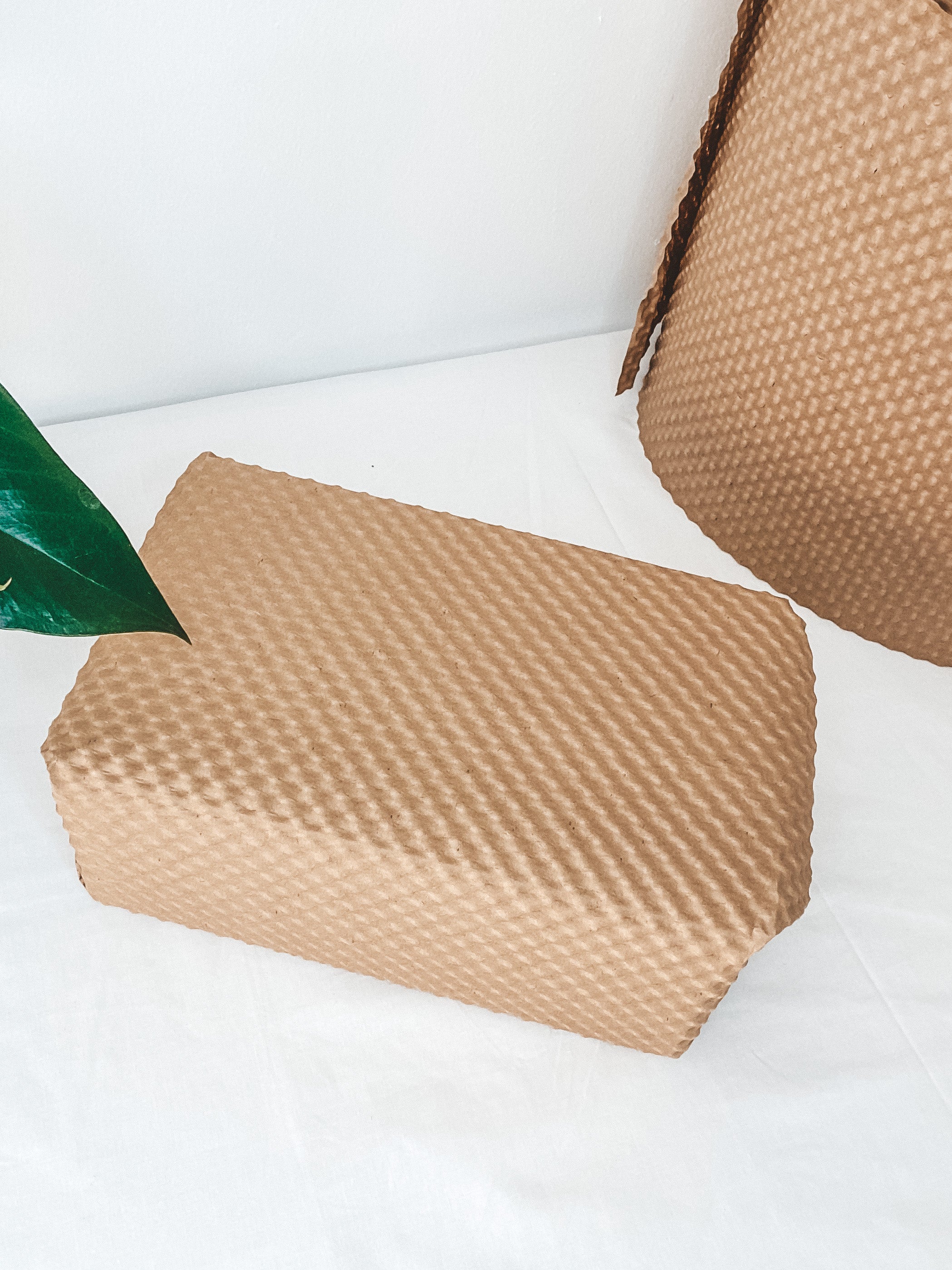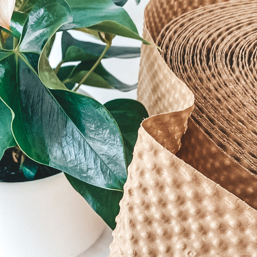 Dimple PaperTM manufactures and supplies a paper cushion packaging option that can be used in place of plastic bubble products.