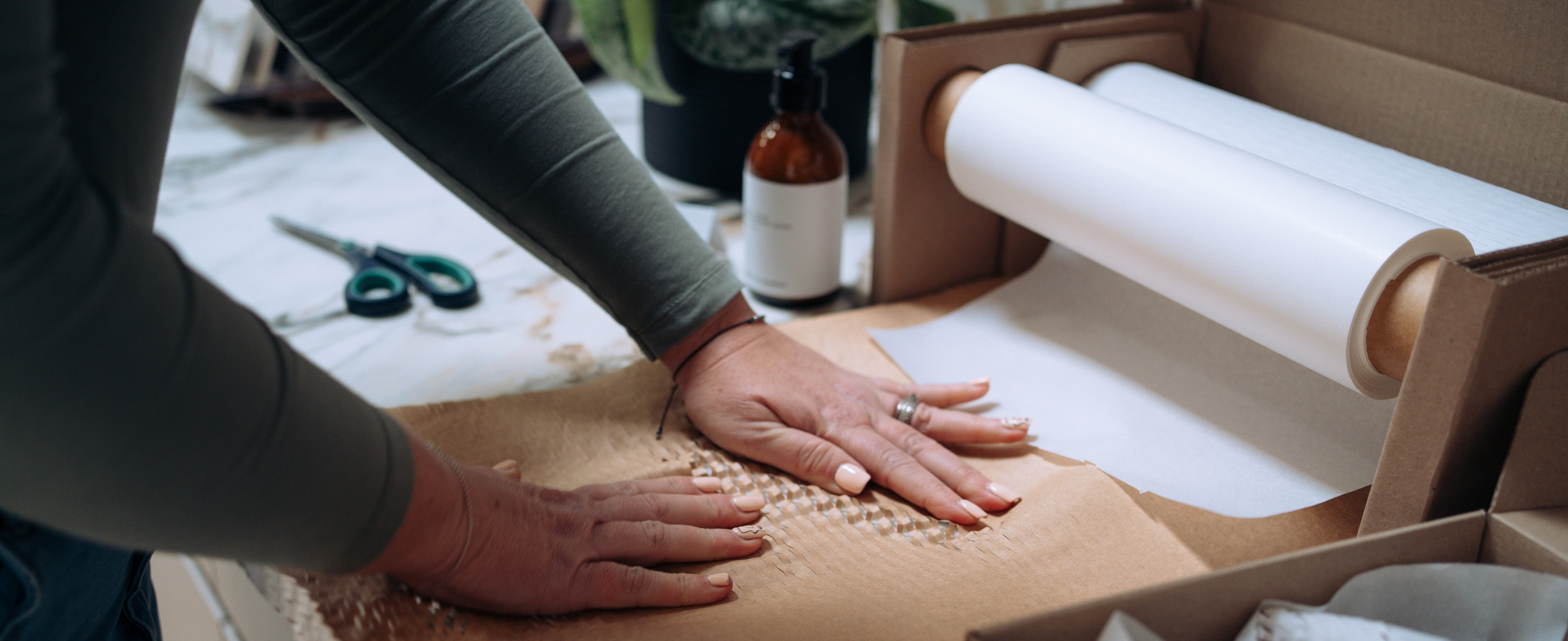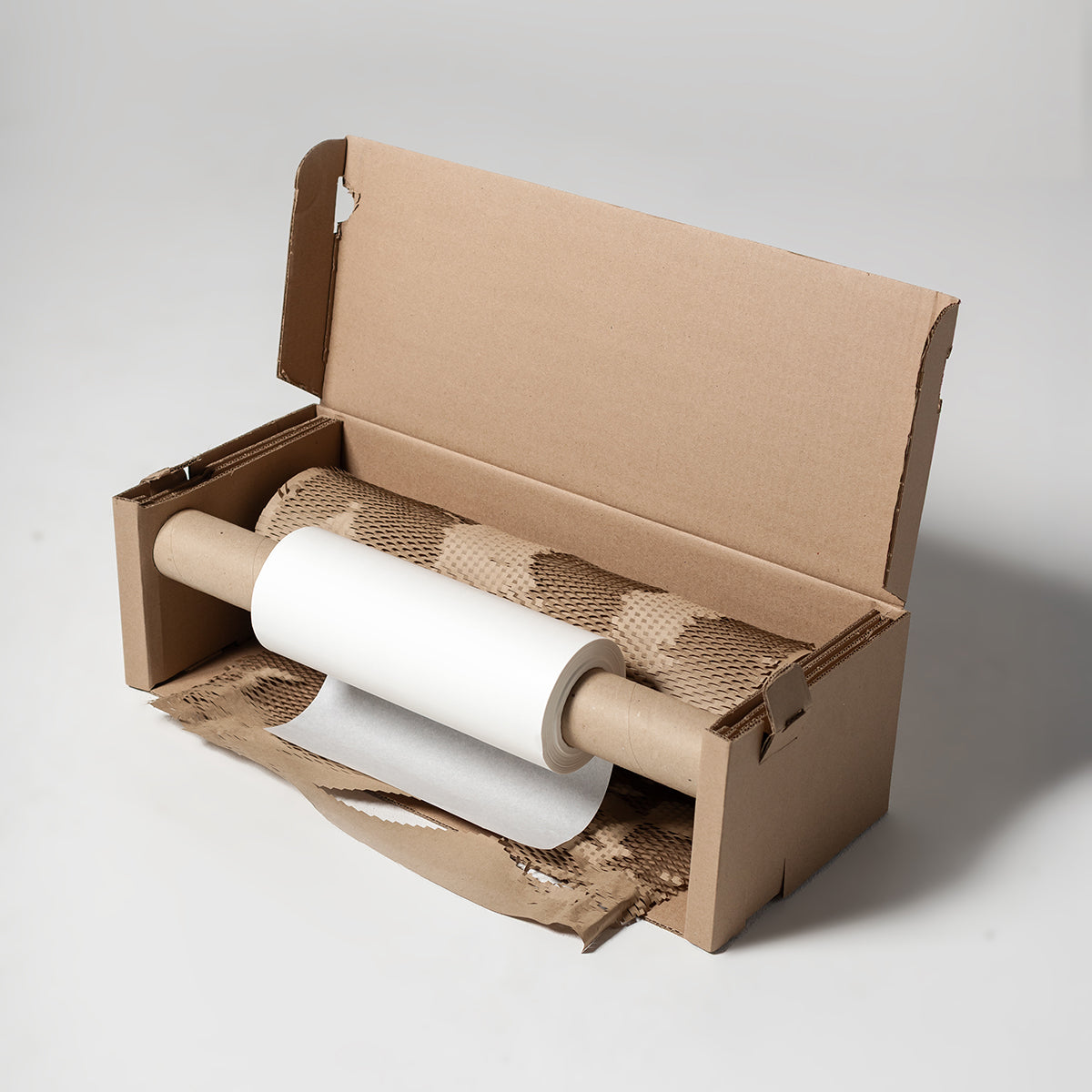 Simply secure the compact Hive unit on your desk/office counter and get ready to start wrapping - the tissue paper interleaves with the paper honeycomb offering the ultimate eco friendly wrapping solution!